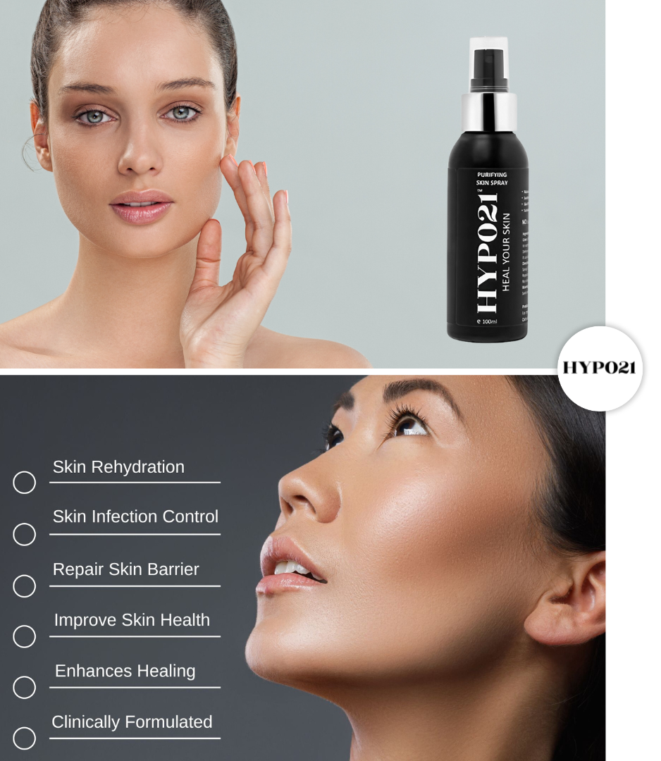 HYPO21 är en medicinskt registrerad hudvårdsspray med ren hypoklorsyra (HOCl), designad för att skydda, återfukta och reparera huden naturligt. Den är organisk, vegansk och hållbar, vilket gör den skonsam för både huden och miljön.
